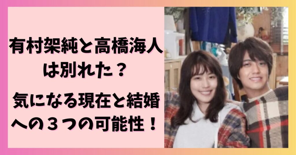2025年4月3日石橋貴明さんが、自身のYouTubeチャンネル「貴ちゃんねるず」にて食道がんを患っていることを突然公表しました。 石橋さんは当初、初期の食道がんとして発表し、半年後には復帰できると動画内でも語っていました。 しかし、2025年9月に週刊誌... 芸能有村架純と高橋海人は別れた?気になる現在と結婚への3つの可能性!